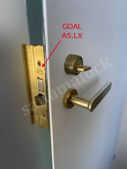 0120-338-599マンションの玄関ドアについている、GOALゴール製のLXシリンダー交換工事例です。