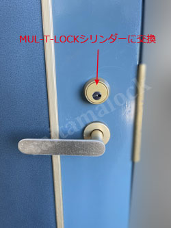 今回はお客様のご要望で、現在使っている古いタイプのギザギザした鍵から防犯性能が高い、オーナーカード付きのイスラエル製MUL-T-LOCKマルティロックシリンダーへ取り換えます。