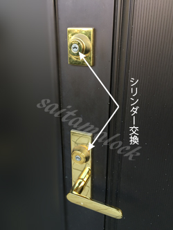 三協アルミ「サンプリマ」玄関ドアについている、 MIWA美和ロック製GAFガードロック(上側)PSシリンダーの交換をさせていただきました。 シリンダー内部の消耗が原因で鍵を回すときに硬く、強引に施錠してしまうと開錠する( […]