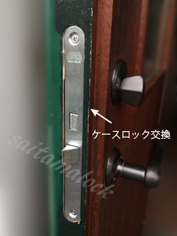 北米や欧州の木質系輸入玄関ドアについている外国製錠前の鍵交換は、扉厚やケースロックの型式によって部品選定がそれぞれ違う場合が多く、我々専門者でも頭を悩ませます。とくに年数が経過し生産終了している部品は、全く同じ交換部品を入手するのは困難です。仮に互換性があった部品だとしてもドア本体を加工して取付けたり、足りない金物は自社で製作するなど工夫して対応しています。海外から仕入れる製品には少量しか入手できないものもあったり、納期が60日以上(船便)かかるときもございます。したがって、タイミングもありますが外国製の鍵の調子が悪いときは、錠前が使えなくなってからではなく、早めに改善されることをおすすめいたします。