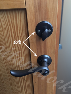 0120-338-599輸入住宅の 木質系玄関ドア についているアブロイ ABLOY LC200 レバーハンドル錠 の 鍵交換 と、 ハンドルセット の取り替え工事例です。錠前の不具合を直すため、もともと取付けられていた ゴールド色の アブロイオリジナルハンドル 、シリンダーカバー 、 サムターン 、シリンダーの付属部品を交換いたします。また、ドアの ウォールナット色 に合うように、 金物はマットブラック仕様のハンドルセットに取り替えさせていただきました。ありがとうございました。