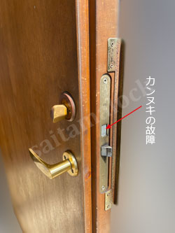 また、ケースロックのカンヌキ部分の不具合が起きていて、いったん施錠(鍵を閉める)すると開錠(鍵を開ける方向に回らない)に時間がかかるほどでした。
