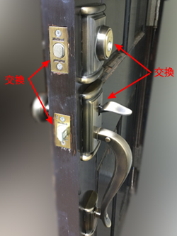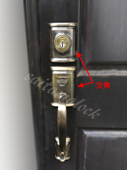 カナダ製やアメリカ製の輸入住宅玄関ドアで、外国製ドアノブ部品が壊れた、鍵の調子が悪いなどでお困りなときは、さいたまロックセキュリティへお気軽にご相談ください。同じような鍵交換作業例は、弊社の鍵屋ブログでこちらをご覧ください。