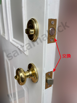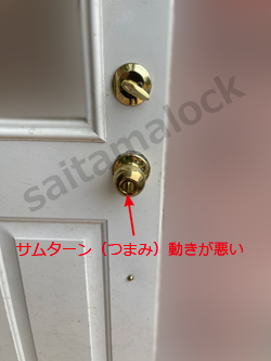 外国製ドアノブ錠で古いタイプのTITANタイタン Kwikset クイックセットのハンドル故障、ドアノブのガタつき、鍵の不具合でお困りな時は、さいたま市の鍵屋さいたまロックセキュリティ株式会社へお気軽にご相談ください。同じような工事施工例をご覧になりたい場合は、弊社ホームページの「鍵屋ブログ」へ