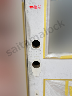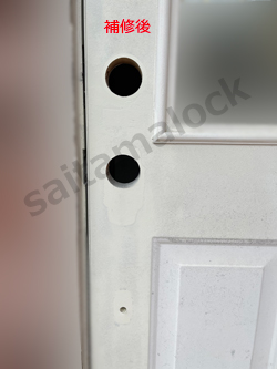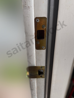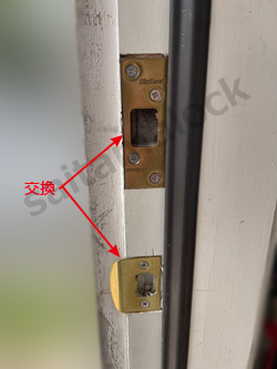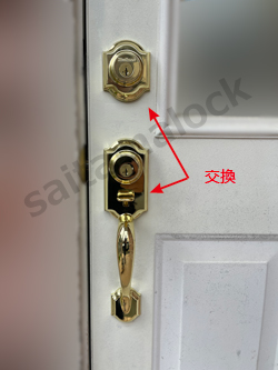 0120-338-599輸入木製玄関ドアで、旧型 TITAN タイタン Kwikset クイックセット錠の鍵交換工事例です。今回はサムラッチハンドルにも鍵穴がついているタイプで、シリンダー(上下の鍵)と外側ハンドルにも不具合が起きている状態でした。そのままにしておくと、ドアの開閉ができなくなり「家に入れない」「玄関から外に出られない」問題が起きる恐れがあります。仮にドアが開いたとしても今度は「戸締りできない」鍵トラブルに遭うので、お客様のご要望で消耗した錠前を全て新しい現行製品に取り換えることになりました。キレイに仕上がり、よろこんでくださって良かったです。本当にありがとうございました。