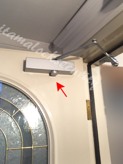 まずは、輸入玄関ドア本体を正しい位置に調整してから、TITAN/Kwikset タイタン/クイックセットの新しいハンドル錠に全部交換いたします。また、錠前の負担を軽減するのと、ドアが風のあおりなどを受けてケガをされないように、ドアの開閉スピードを制御できるドアクローザーを取付けることになりました。