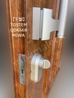 0120-338-599TOSTEMトステム玄関ドアについている電動サムターン式電気錠の鍵交換工事例です。