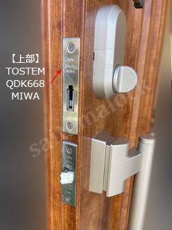 伺って確認するとトステムCAZASカザスの電動サムターンで、 MIWAミワロック製のシリンダーがついていました。