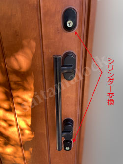 0120-338-599積水ハウスの玄関ドアで、新日軽断熱ドアについているKABAカバスターシリンダーの交換工事例です。