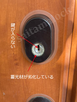 同様のケースで相談を受ける時がありますが、潤滑剤を注してもシリンダー内に異物(鍵穴周りの蓄光材で劣化したプラスティックの粒子)が溜まっているので、一時的に回復してもあとで不具合が起きて全く動かなくなるような鍵のトラブルに遭う場合があります。
