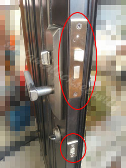 まず、主錠のハンドル錠を外して切り欠け穴がどうなっているかを調べます。
