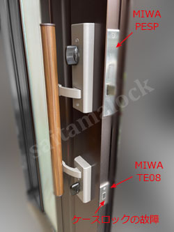 0120-338-599YKK「プロント」玄関ドアについている旧型のMIWAミワロック製URシリンダーの鍵交換工事例です。