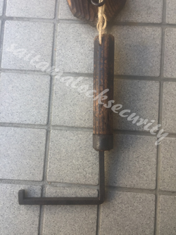 0120-338-599お客様から「蔵の戸を開けてもらいたい」と、ご相談がありました。升格子の引戸で引手部分に倉庫錠、戸の下端に戸落としの鍵穴があります。どちらも現役で使われていたそうで、蔵の鍵を中に置いたまま誤って戸を閉めて施錠してしまったので、引戸を開けられない状態にありました。