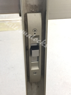 おかしいな?のサインは「鍵を回す時に重い」「鍵が回せない」「内側のサムターンが上がりにくい・下がりにくい」などです。不具合の変化を最初の段階で気付けば、調整次第で直りますから早めに解決することが肝心です。ガラス引違い戸錠の交換工事例でした。